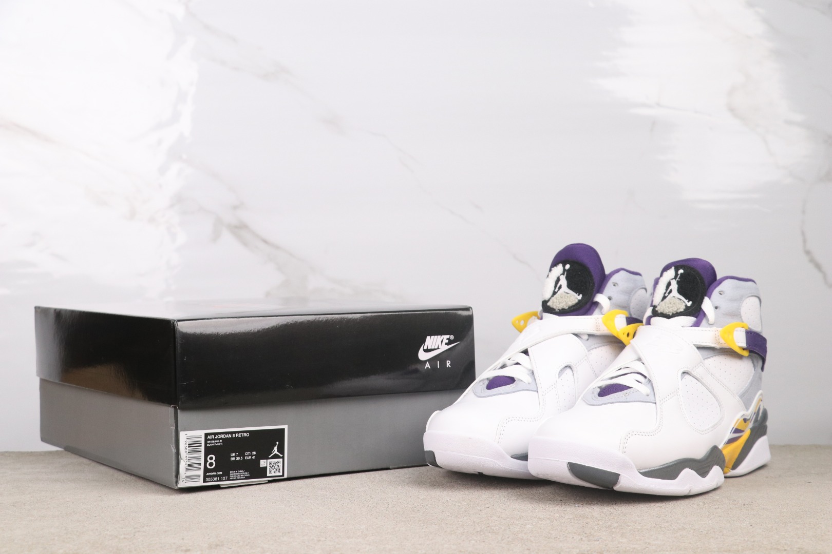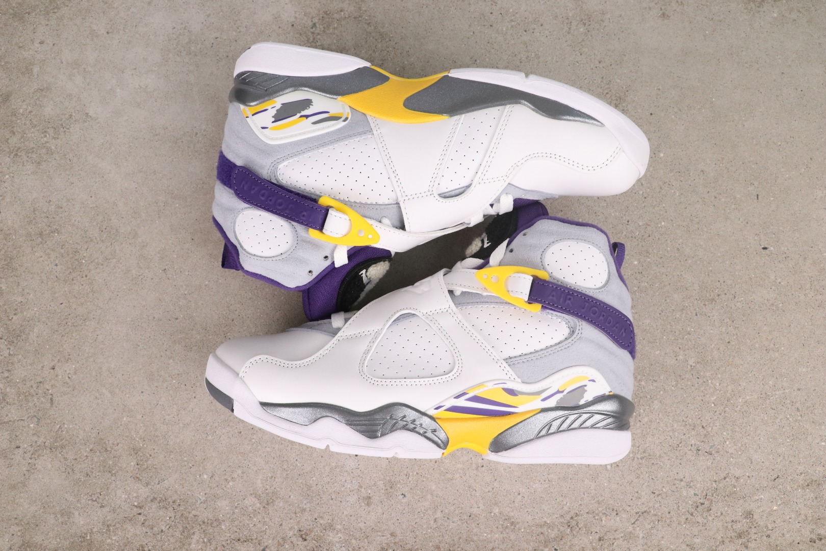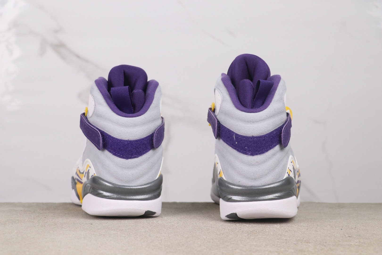 AJ8 white, yellow, and purple
